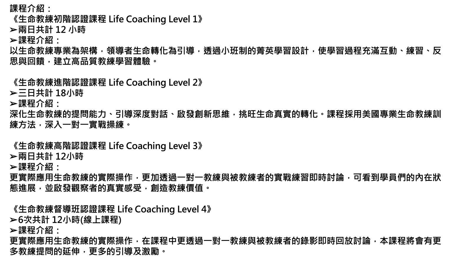 《 生命教練初階認證課程 Life Coaching Level 1》